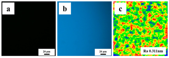 Initial surface quality of samples (a) dark field image; (b) bright field image; and (c) typical roughness distribution diagram.