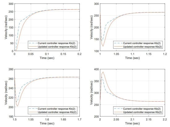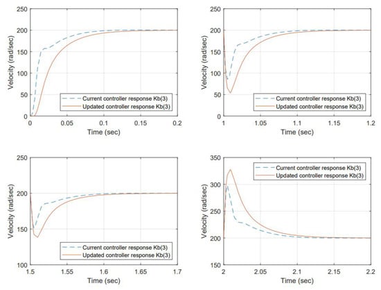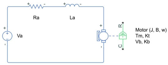 The system’s time response is composed of the electrical time constant and the mechanical time constant (intrinsic to each motor). Assuming the electrical time constant is small versus the mechanical time constant, the terms in Equation (9) related to the electrical time constant can be neglected [14]. Equation (9) can be expressed as