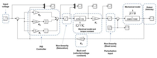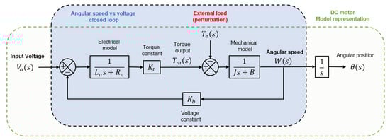 The model can be described in the block diagram shown in Figure 2. It is possible to identify each component (the block diagram does not include nonlinearities). The back-EMF and the torque constant play a vital role in the motor operation and the control definition.