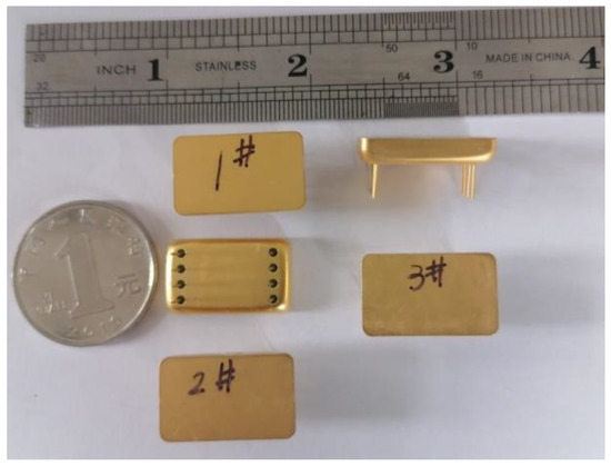 The estimated quality factor of the microstructure was less than 100 under standard atmospheric pressure packaging. When the AC and DC voltages were both less than 5 V, the vibration amplitude was small, the detection capacitance changed slightly, and the interface circuit was difficult to detect. To reduce the resonance energy consumption, the core structure was vacuum-encapsulated in a metal tube and shell (20–30 mTorr), and the packaged accelerometer was as shown in Figure 12.