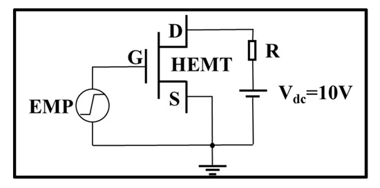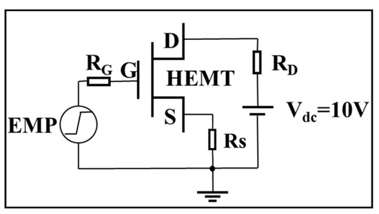 - Liu, L.; Du, Z. Influence of Microwave Pulse Power on The Burnout Effect of The AlGaN/GaN HEMT in a LNA. In Proceedings of the 2019 IEEE 6th International Symposium on Electromagnetic Compatibility (ISEMC), Nanjing, China, 1–4 November 2019; pp. 1–5. [Google Scholar]