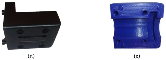 The printing of the ‘Shell’ was made with the large dimension (80 mm) being printed along the z-axis. The upper surface of the part had to be protected, as it plays an important role in the effectiveness of the joint with the ‘Shell Connection’. It is often observed that the surface resting on the 3D printer bed shows roughness, local detachments, and generally more defects. For this reason, the opposite side of the part was chosen to rest on the printer bed, as the surface quality does not play a decisive role in the functionality of the mechanism. Supports were selected everywhere for good rigidity of the many areas of the part that contained notches and grooves. The layer height was 0.2 mm, and the total print duration was about 7 h and 15 min. The infill density was 15%, and the angle was 80°. This led to the complete removal of supports in various places, such as the straps for the strap, but also severely restricted the inside of the workpiece. Regarding the tolerances in addition to the dimensions, this concerned the diameter of the holes for the screws, which became 3.4 mm, whereas the diameter of the housing for the screw head became 5.8 mm. Moreover, an additional margin of 0.3 mm was given on each side of the case inside the part where the ‘Angle Connection’ will nest, as the surfaces cannot be completely smooth, despite the removal of the supports.