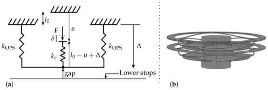 In this model, the circular ortho-planar spring structure is unfolded (and spread in the vertical direction by a length for visualization purposes only). is zero in practice. The system is presented in Figure A1.