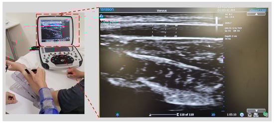 - Oh, E.J.; Lee, J.H.; Kwon, E.J.; Min, J.J. Simulation-based training using a vessel phantom effectively improved first attempt success and dynamic needle-tip positioning ability for ultrasound-guided radial artery cannulation in real patients: An asses-sor-blinded randomized controlled study. PLoS ONE 2020, 15, e0234567. [Google Scholar] [CrossRef] [PubMed]