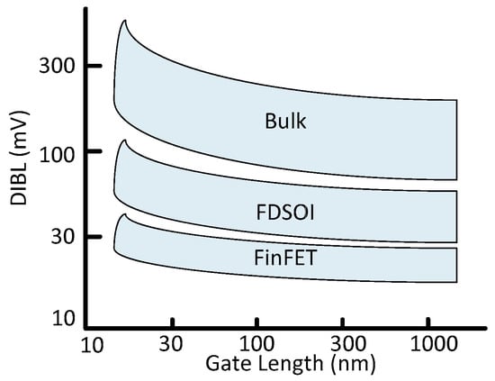 DIBL in bulk fully depleted silicon on insulator (FDSOI) and FinFET [54].
