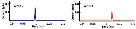 The multi-threshold SRAM cell design minimizes the leakage current by choosing ‘0’ or ‘1’ as the preferential state. Each logic state associated with a leakage current has already been explained above (Section 4). Leaky transistors are set to a high threshold value (hvt) to reduce the leakage [43]. This approach, as seen in Figure 9a, reduces the leakage about 70 times by choosing ‘1’ as its preferential state, but at the cost of a degraded read ability. The SRAM cell in Figure 9b provides 1.6 and 70 times less leakage current for selecting ‘1’ and ‘0’, respectively, as preferential states. This asymmetry causes an increase in write delay. Next, the SRAM cell in Figure 10c reduces the leakage current about seven times for the ‘0’ state but compromises the read and write noise margins.