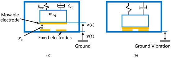 The cantilever beam–proof mass structure in Figure 2a can be simplified as a spring-mass-damping system with this kinetic equation []: