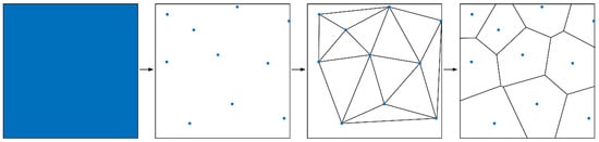 Voronoi is a group of contiguous polygons composed of lines bisected vertically, connecting the lines of two adjacent points. Since its invention, Voronoi has been widely used in various scientific fields, such as chemistry, geometry, ecology, and social economics. It is defined mathematically as []: