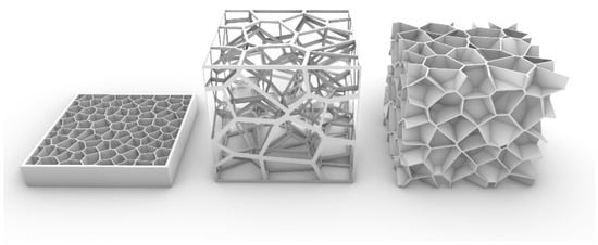 - Jonàs, M.; Jérémie, D.; Sylvain, L. Procedural Voronoi foams for additive manufacturing. ACM Trans. 2016, 35, 44. [Google Scholar] [CrossRef]