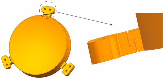 The flexible structure was designed according to the surface shape accuracy requirements (Figure 12) and realized by the wire-electrode cutting technology after AM. It can isolate the influence of screw tightening force on the optical surface and absorb specific vibrations to realize the effect of unloading stress []. The deformations in multiple directions were considered to improve the mirror adaptability during the flexible structure design. At the same time, the distance between the mounting surface and the mirror should be increased as much as possible to extend the propagation distance of the tightening force and attenuate transmission.