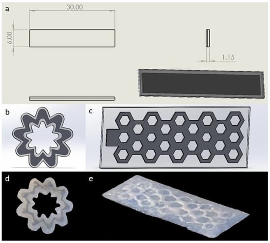 (a) The detail engineering diagram of sample splines, (b) the design structure, (c) the printed real part, (d) hollow flower structure and (e) Poisson structure.