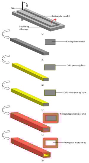 17]. Recently, a processing technology based on the combination of WECMM, electrochemical deposition, and selective dissolution has been proposed to realize the integrated manufacturing of 1 THz micro metal rectangular waveguide cavity devices. Although the overall manufacturing efficiency is reduced due to the low dissolution efficiency of the pure-nickel rectangular mandrel of WECMM, this combined manufacturing process provides a research basis for the manufacturing of terahertz metal rectangular cavity devices with high-operating-frequency bands [