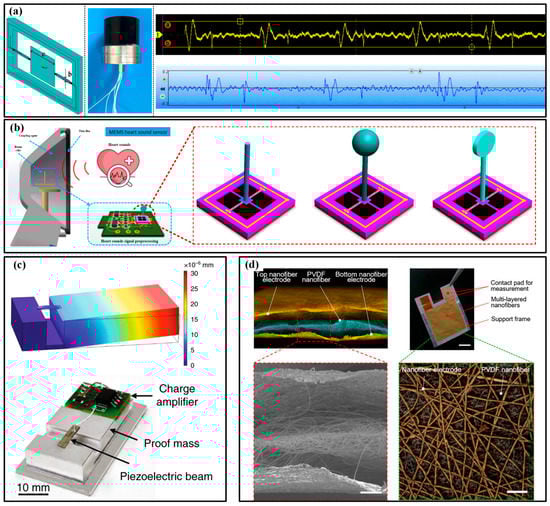 - Ning, Y.; Zhang, M.; Lang, Y.; Gong, Y.; Yang, X.; Pang, W. Electronic Stethoscope Based on Triangular Cantilever Piezoelectric Bimorph MEMS Transducers. J. Microelectromechanical. Syst. 2022, 31, 450–456. [Google Scholar] [CrossRef]