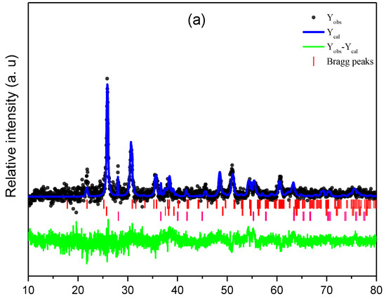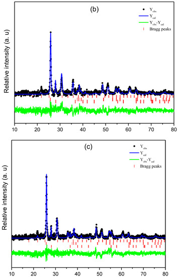 Table S1 (Supplementary Information) shows the lattice parameter of TiO2 thin films obtained of the refined structure for anatase and rutile in function electrodeposition time. The results verified the correlation between the experimental and theoretical intensities for both samples (Figure 1a,e), as observed in the residual line.