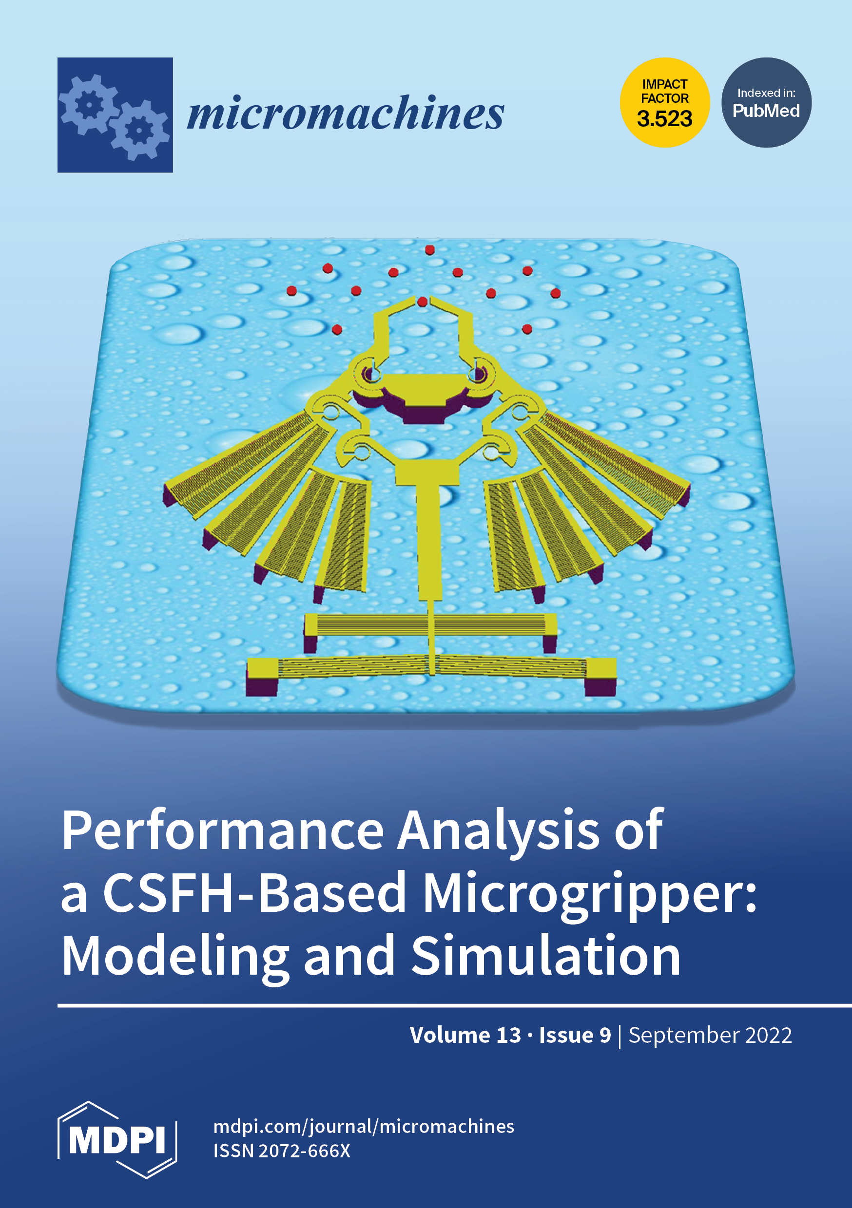 Cover Story: Microgrippers are promising tools for the micro-manipulation and characterization of cells. In this paper, a biocompatible electro-thermally actuated microgripper with rotary capacitive position sensor is presented. To overcome the limited displacement possibilities usually provided by electrothermal actuators, conjugate surface flexure hinges (CSFH) are adopted. A kinematics modeling approach based on the pseudo-rigid-body method (PRBM) is applied to describe the microgripper’s working mechanism, and analytical modeling, based on the finite elements method (FEM), is used to optimize the electrothermal actuator design and the heat dissipation mechanism. Finally, FEM-based simulations are carried out to verify the microgripper, the electrothermal actuator and heat dissipation mechanism performance, and to assess the validity of the analytical modeling. View this paper
