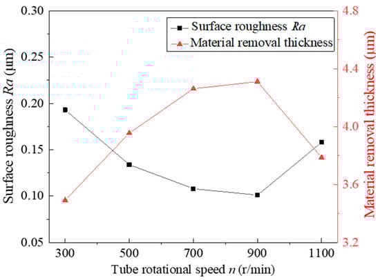 Effect of tube rotational speed on surface roughness and material-removal thickness.