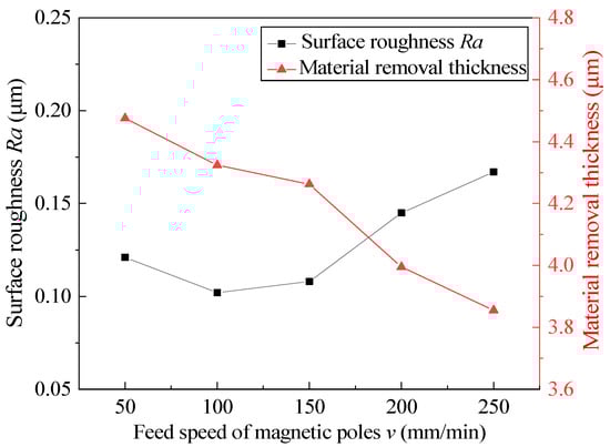 Effect of the feed speed of the magnetic pole on surface roughness and material removal thickness.