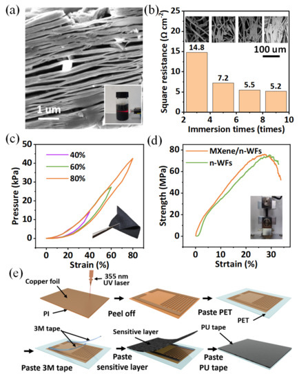 - Li, S.; Li, R.; González, O.G.; Chen, T.; Xiao, X. Highly sensitive and flexible piezoresistive sensor based on c-MWCNTs decorated TPU electrospun fibrous network for human motion detection. Compos. Sci. Technol. 2021, 203, 108617. [Google Scholar] [CrossRef]