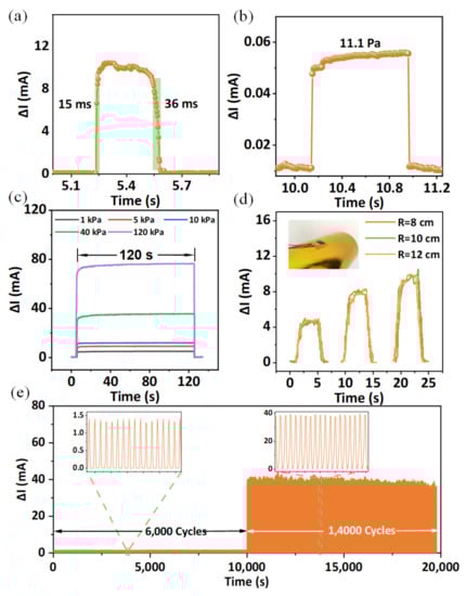 - Cheng, W.; Wang, J.; Ma, Z.; Yan, K.; Wang, Y.; Wang, H.; Li, S.; Li, Y.; Pan, L.; Shi, Y. Flexible Pressure Sensor with High Sensitivity and Low Hysteresis Based on a Hierarchically Microstructured Electrode. IEEE Electron. Device Lett. 2018, 39, 288–291. [Google Scholar] [CrossRef]