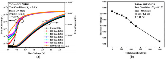3.2. Evaluationof the TID Effect on Sensitive Parameters of PDSOI Devices