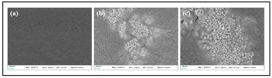 Surface analysis by SEM images ((a) G-Ref, (b) GS-2, (c) GR-2).