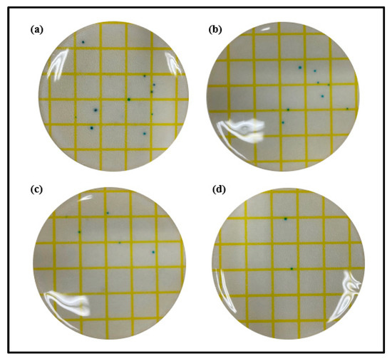 Antimicrobial property of samples ((a) Ref, (b) G-Ref, (c) GS-2, (d) GR-2).