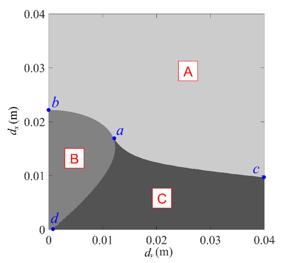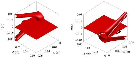 In addition, it can be seen in Figure 6 that, given the magnet distance , when the magnet distance , the bifurcation diagram only has stable solutions and no unstable solutions. This phenomenon illustrates that the system has only stable equilibrium positions and no unstable equilibrium positions when the distance between the end magnet of the combined beam and the external magnet is less than 0.003 m.