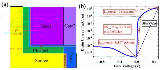 (a) Structure of the proposed InGaAs/GaAsSb HJ-LTFET; (b) the transfer characteristic of HJ-LTFET.