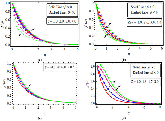 C f Re x 0.5 = [ f ( 0 ) + 1 6 β δ Re L ( f ( 0 ) ) 3 ] , N u x Re x 1 / 2 = [ 1 + 4 3 R d ] θ ( 0 ) , S h x Re x 1 / 2 = ϕ ( 0 )   and   W n Re x 1 / 2 = W ( 0 ) . }