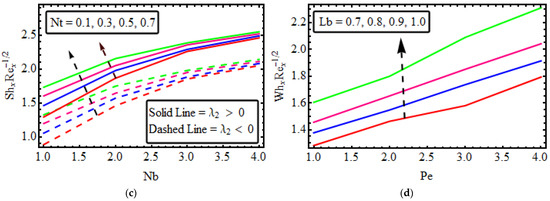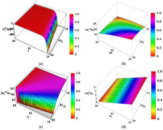 The thermo-fluidic quantities of engineering interest in this study are skin friction C f x , heat transfer rate N u x , mass transfer rate S h x , and motile density W h x .