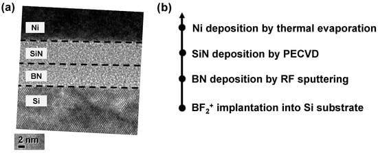 (a) TEM image and (b) process flow of Ni/SiN/BN/p+-Si device.