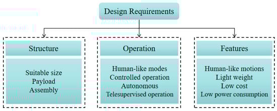 Based on the aforementioned characteristics, several requirements must be considered for designing a humanoid torso; the main ones are listed in Figure 2.