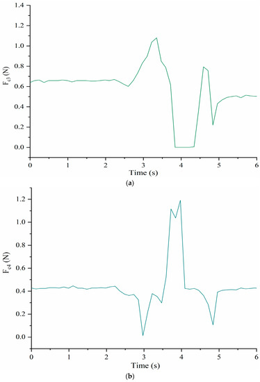 Acquired forces between the cables and shoulder during a full rotation: (a) Fc3; (b) Fc4.