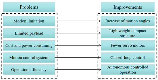 - Cost and power consumption. Four servomotors require considerable actuation power to drive the torso system, which also increased the cost of the prototype. Therefore, using fewer servomotors would be a convenient way to obtain a more efficient structure and control system by saving on equipment costs and power consumption.