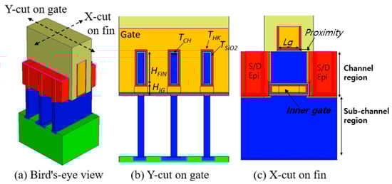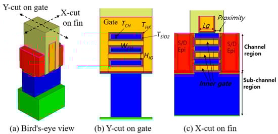 - Choi, Y.; Lee, K.; Kim, K.Y.; Kim, S.; Lee, J.; Lee, R.; Kim, H.-M.; Song, Y.S.; Kim, S.; Lee, J.-H. Simulation of the effect of parasitic channel height on characteristics of stacked gate-all-around nanosheet FET. Solid-State Electron. 2020, 164, 107686. [Google Scholar] [CrossRef]