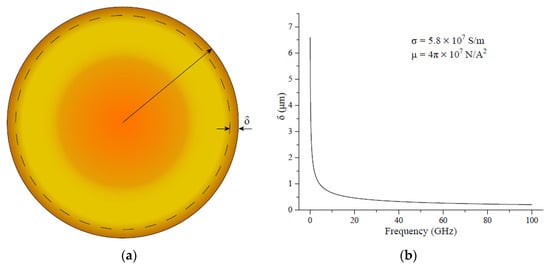 Skinning depth of the Cu: (a) skinning depth illustration; (b) skinning depth as frequency.