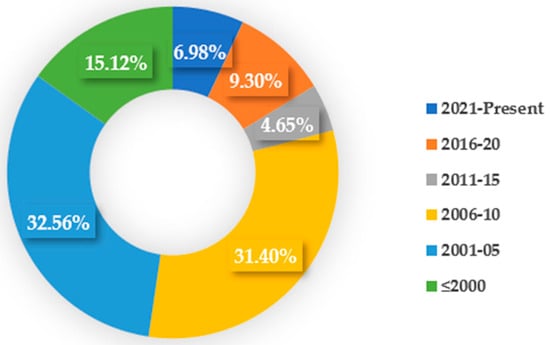 The surface generation during the EDM process has long been a subject of interest to the non-traditional manufacturing research community. Being an electro-thermal process, the surface generated during the EDM process suffers from various surface and sub-surface defects, and the surface undergoes surface modification due to the migration of materials from the tool electrode and dielectric medium. Although researchers working on the EDM area initially focused for the most part on minimizing the surface modification as much as possible to minimize the alteration of mechanical properties and functionality of the machined surface, a recent research trend has focused on how to utilize those modified surfaces for functional applications. Researchers have even focused on targeted modification of the surface by a variety of techniques so that the modified surface can be used for functional applications. Targeted elements from the tool electrode and dielectric can be deposited on the machined surfaces due to oxidation and carbonization processes happening during the EDM process. Some studies have even focused on using EDM as a coating process to provide protective coating layers on the machined surface. Others have focused on making the surface biocompatible or resistant to corrosion, wear, and other mechanical or environmental extreme conditions. In this regard, this study aims to provide a comprehensive overview of the EDM-based surface modification techniques reported in the literature for making functional surfaces. The generation of subsurface or coating can be achieved by a single step using EDM whereas multiple steps are required in the case of other manufacturing processes. A total of 86 papers related to EDM-based surface modification processes were taken into account for several analyses. Figure 1 shows the number of papers from different publication years that were considered in this study.