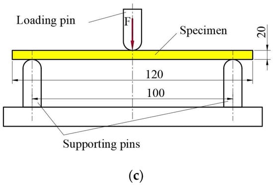 The three-point bending layout corresponds to a simply supported beam with force applied in the middle section. In this case, the maximum deflection of a beam with constant cross-section can be calculated with Equation (1):