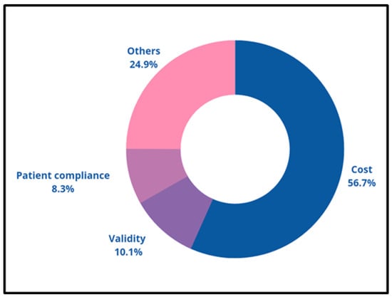 Some of the problems that need to be solved include simultaneously monitoring various physiological parameters and improving the ergonomic design following user compatibility [46]. Research on hybrid wearable sensors, techniques for attaching and detaching sensor components, and thinner, softer, invisible electronics are some of the technology’s prospects [47]. It has been predicted that augmented/virtual reality, IoT, and increased human–machine interactions using various gestures will all be combined. The top three drawbacks of using smart electronics for healthcare purposes is depicted in Figure 4.