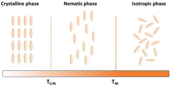 Phase transition behavior for a nematic LC with an increase in temperature.