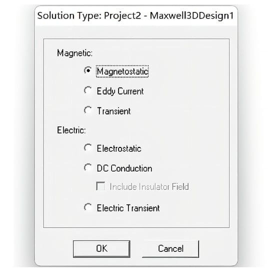The magnetostatic static magnetic field solver was analyzed here, as shown in Figure 6.