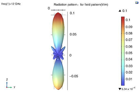 As shown in Figure 4, the pattern has strong spatial symmetry. What this design emphasizes is the change of the two-dimensional pattern on the XOZ plane with array parameters. A two-dimensional far-field scattering model is then proposed, which is shown in Figure 5. The method of building a two-dimensional model uses a certain cross section to study the scattering field. After verification, each group of results needs to be calculated for about 30 seconds on a PC platform with a 4-core CPU and an 8-G memory.