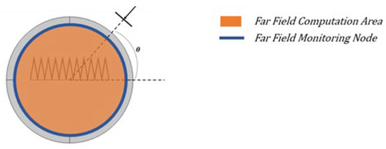 This paper uses the far-field node of Comsol software to calculate the radiation field at the specified location. The far-field node is used to calculate the scattering amplitude, so to determine the complex field at a particular location. The expression for the component of the far-field electric field is: