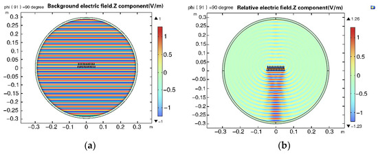 Electric field simulation results of the 2D scattering model. (a) Background electric field. (b) Relative electric field.