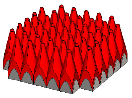 The coated cone is made of brass and installed on the bottom plate, and its gap is filled with thermal conductive silicone grease. To minimize heat loss, the coated cone array is surrounded by an outer shell and the bottom is covered with thermal insulation material. The corresponding diagram of the coating cone array is shown in Figure 8.