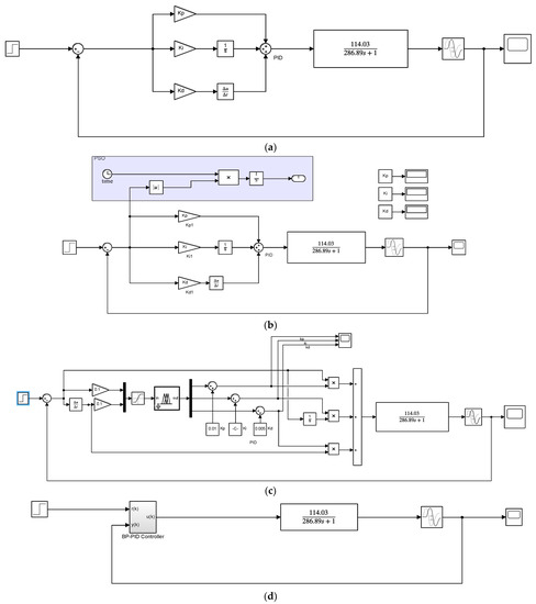 Block diagram of four temperature-control algorithms. (a) PID; (b) PSO-PID; (c) Fuzzy-PID; (d) BP-PID.
