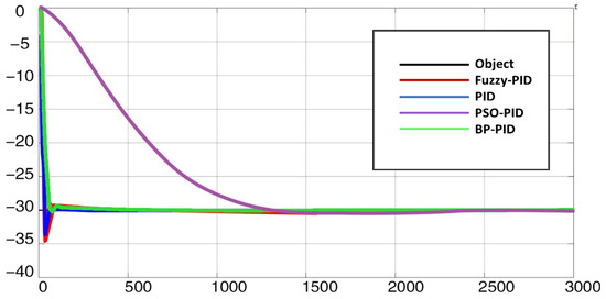 As shown in Figure 13, BP-PID has the best performance due to its small overshoot and the fastest response speed. Compared with traditional PID, PSO-PID and Fuzzy-PID algorithm have some improvements, but there is still a certain gap compared to the BP-PID algorithm.