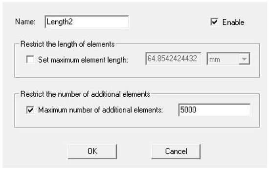 In order to run a simulation in ANSYS, the user must define a region surrounding the object(s) under investigation. For the simulations in this article, the defined region was specified as being filled with air. Since ANSYS builds the vector field by using FEM, a mesh must be defined. By default, ANSYS generates a mesh composed of 1000 elements. For this study, the number of elements was increased to 5000 to build a smoother mesh to produce a more continuous vector field. Figure 4 shows the dialogue box within ANSYS which allows the user to change the number of mesh elements.