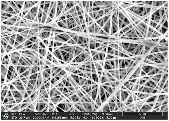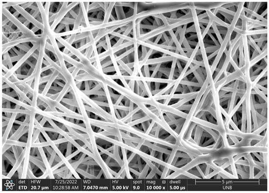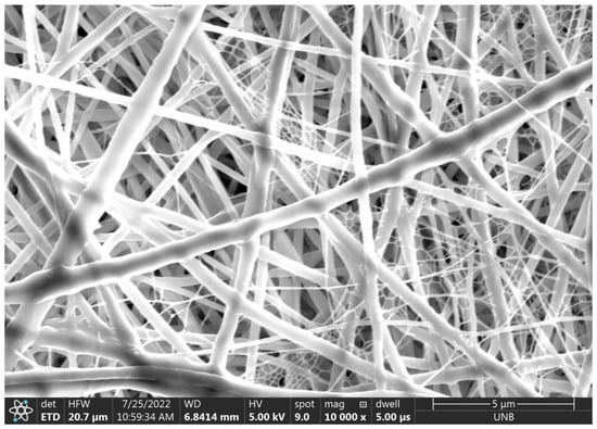 The 10,000× magnification of electrospun fibers from deposit 1.