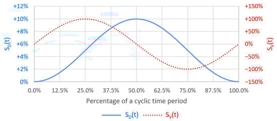 In order to mimic the peristalsis motion, the front side is assumed to move as a rigid body and its motion is modeled by using the dynamic mesh user-defined function (UDF) as described by Equations (7) and (8) for its displacement and velocity, respectively. The temporal displacement and velocity of the front side in a deformation cycle is shown in Figure 2.